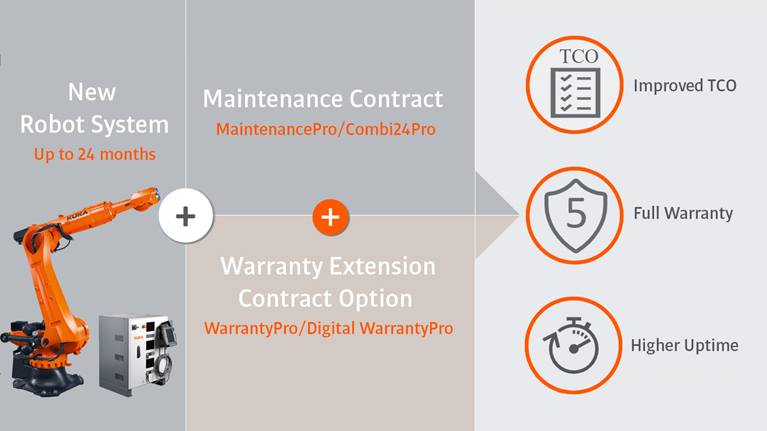 KUKA Roboters in den ersten 24 Monaten nach Auslieferung auf 5 Jahre zu erweitern. Durch kontinuierliche