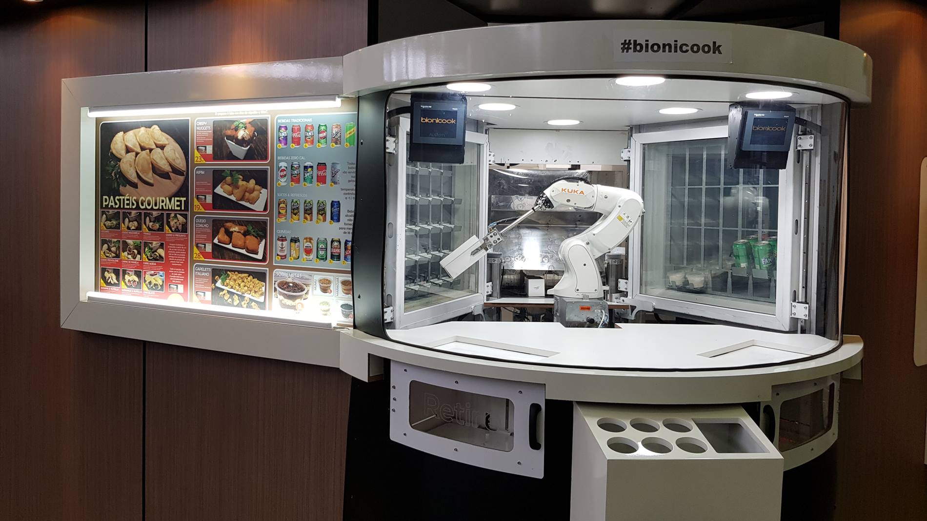 Vor allem aus der Massenproduktion sind Roboter mittlerweile nicht mehr wegzudenken. Smartphones werden heute fast durchweg von Robotern montiert. In den amerikanischen Lagern von Amazon arbeiten mittlerweile 45.000 Roboter. Sie kommissionieren Bestellungen, laden angelieferte Waren in die Hochregale ein. General Motors hat bereits 8.000 Roboter im Einsatz, die sogar über eine Cloud gesteuert werden. Wenn Sie nun aber denken, dass kleine Unternehmen einen viel zu großen Aufwand mit der Einführung von Robotern haben, täuschen Sie sich. So installierte das brasilianische Unternehmen Bionicook den wahrscheinlich ersten Fast-Food-Roboter-Automat der Welt: Ein KR 3 AGILUS kocht und serviert den Gästen Snacks, Getränke und Desserts.