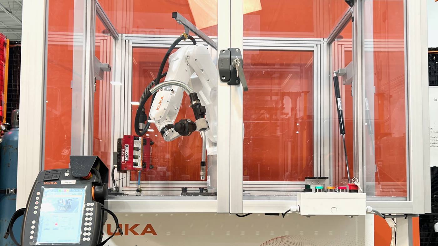 The KUKA Edu_ArcWelding cell comes complete with the curriculum, hardware and software necessary for training and education in robotic arc welding. The KUKA Edu_ series of mobile robot carts are designed to support educators' need to make robotics a core part of their STEM education programs. With the Edu_ArcWelding cell, students are given the opportunity to learn and perform basic robot programming and operation skills on robotic hardware and even manufacture small parts. Upon completion of the training course, students receive a manufacturer certification.
