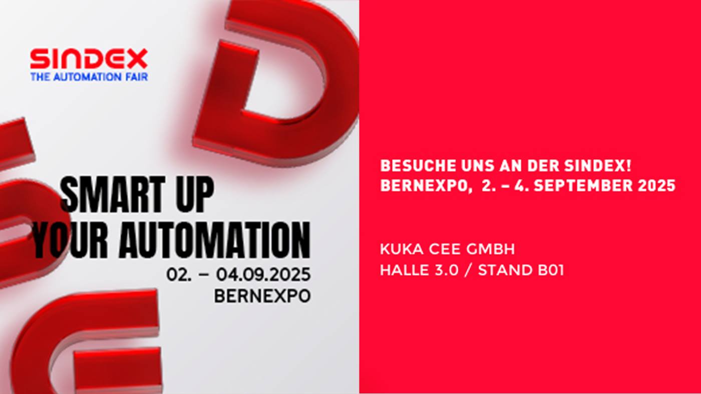 KUKA cordially invites you to visit us at SINDEX in Bern from September 2 to 4, 2025. The trade fair presents the entire spectrum of industrial automation – from individual components to complete systems and seamlessly integrated solutions. Visit us in Hall 3 at Booth B01.