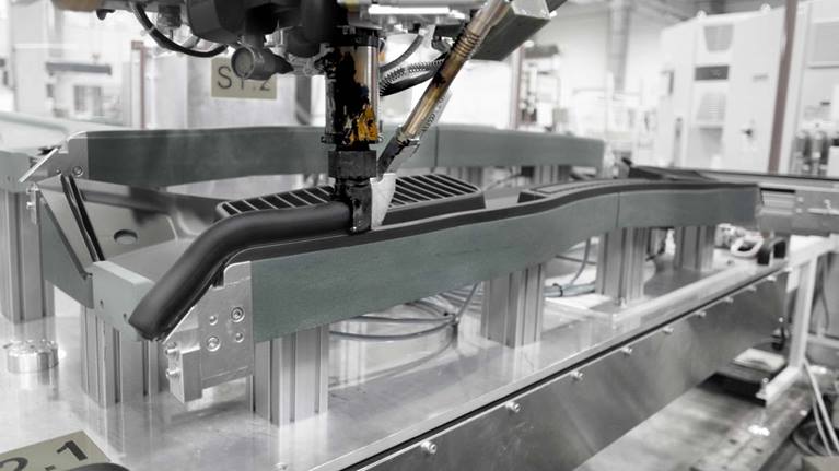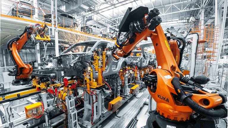 Automotive manufacturers are faced with the challenge of producing ever greater numbers of electric vehicle models alongside their portfolio of conventional vehicle models with internal combustion engines. Increasing type variety, more frequent changes of models and widely varying batch sizes require maximum flexibility and versatility. KUKA SmartProduction unites precisely these factors and enables customers to produce different assemblies for internal combustion and electric models cost-effectively in a common set-up of cells. These production cells of the SmartProduction system are supplied with components and tools independently of their location. This takes customized production to a new dimension.