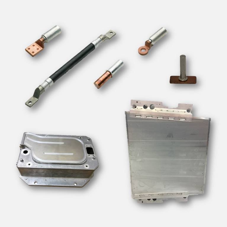 Components for electrical energy distribution in copper/aluminum materials, including: