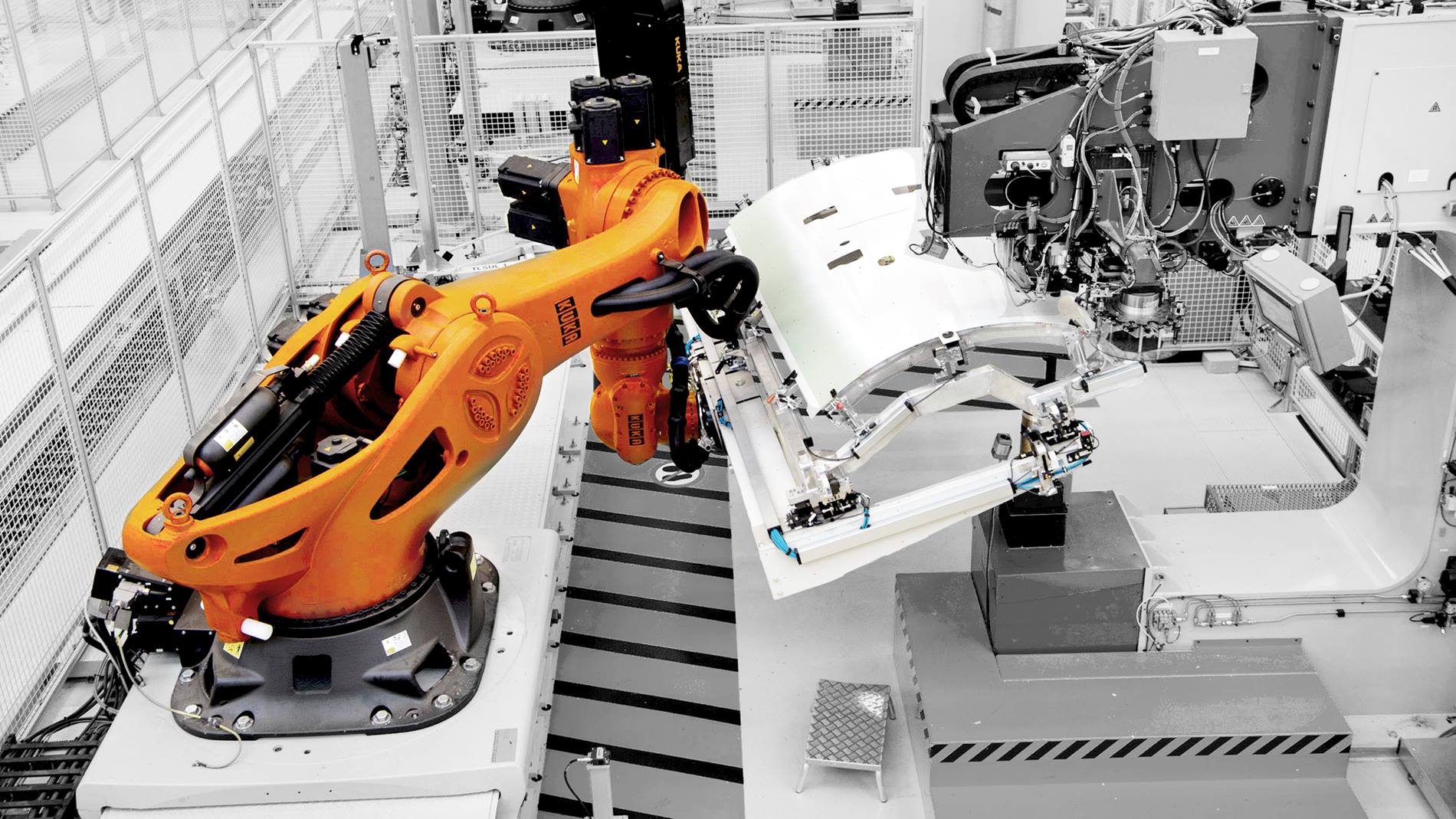 Three KUKA KR 1000 titan handling robots and three automatic, all-electric drilling/riveting machines are used. These were entirely implemented by KUKA, partially in cooperation with subcontractors such as the US firm Gemcor.