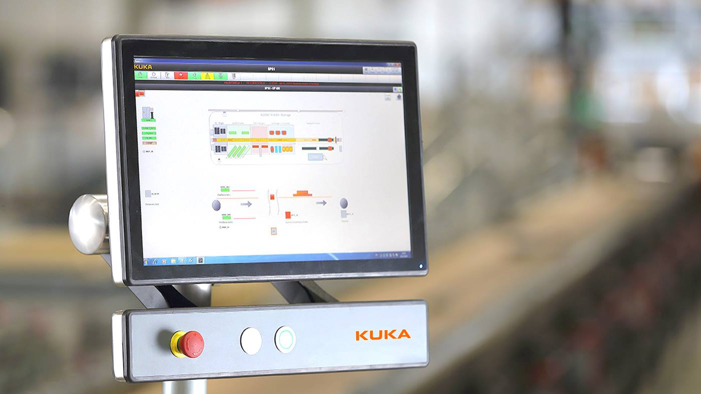 KUKA integrated the Siemens Sinumerik 840D as the higher-level machine controller. KUKA also defined and implemented the interface between the Siemens controller and the KUKA KR C4 robot controller. This means that operators can control all the machines via a single, familiar interface. It makes no difference here whether these are KUKA handling robots or third-party machines, such as the automatic riveting machines from the USA that KUKA has seamlessly integrated into the system. Using KUKA’s own control standard – miKUKA – information is collected, visualized on the line and made available to the customer systems. The robot motion for the drilling/riveting process was programmed entirely offline.