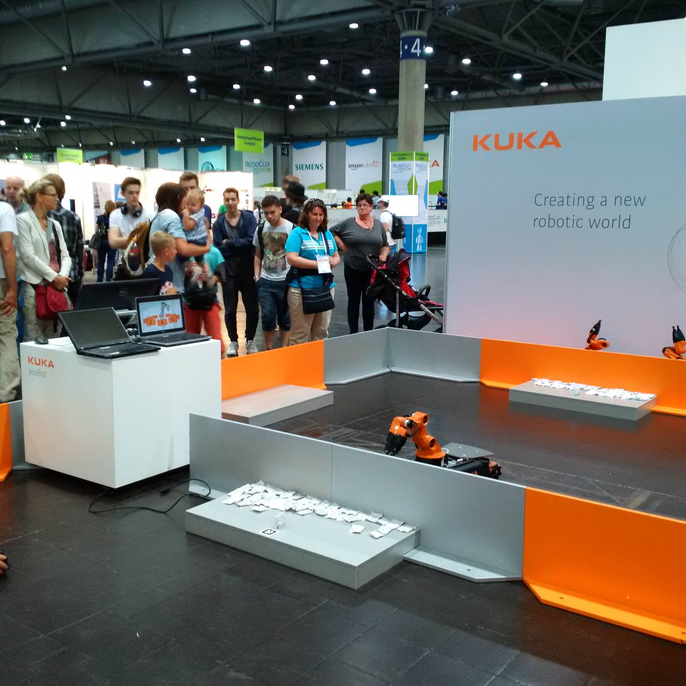 Since every development always starts with a first, small step, KUKA brought the youBot to the RoboCup at the Leipzig trade fair. The robot is an omni-directional mobile platform, on which a five-axis robot arm with two-finger gripper is mounted. The device allows the realization of your own controls and application ideas. Its biggest advantage: The youBot can be controlled with a variety of open source software packages as well as other software (C++ API, ROS, Orocos, LabView and many more). KUKA youBot offers researchers, lecturers and students as well as research and development departments in industry the hardware basis to try out new things and scale knowledge for other applications. With the KUKA youBot, it is possible to conduct small-scale research on important topics of the factory of the future on the way to becoming an Industry 4.0 solution," explains Dr. Bischoff.
