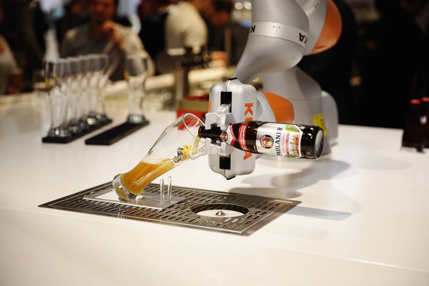 Con il robot per birreria, BAIER Engineering GmbH ha sviluppato il primo impianto di spillatura completamente automatico al mondo. Il sistema è nato dalla collaborazione con la Hochschule Aalen e specialisti del settore delle bevande. Il barman è un robot KUKA di tipo KR CYBERTECH, che miscela cocktail, spilla bevande, serve e incassa. “Il robot per birreria è un professionista che svolge anche una funzione di richiamo e attrazione” secondo la descrizione di Thomas Baier, fondatore e amministratore delegato di BAIER Engineering.