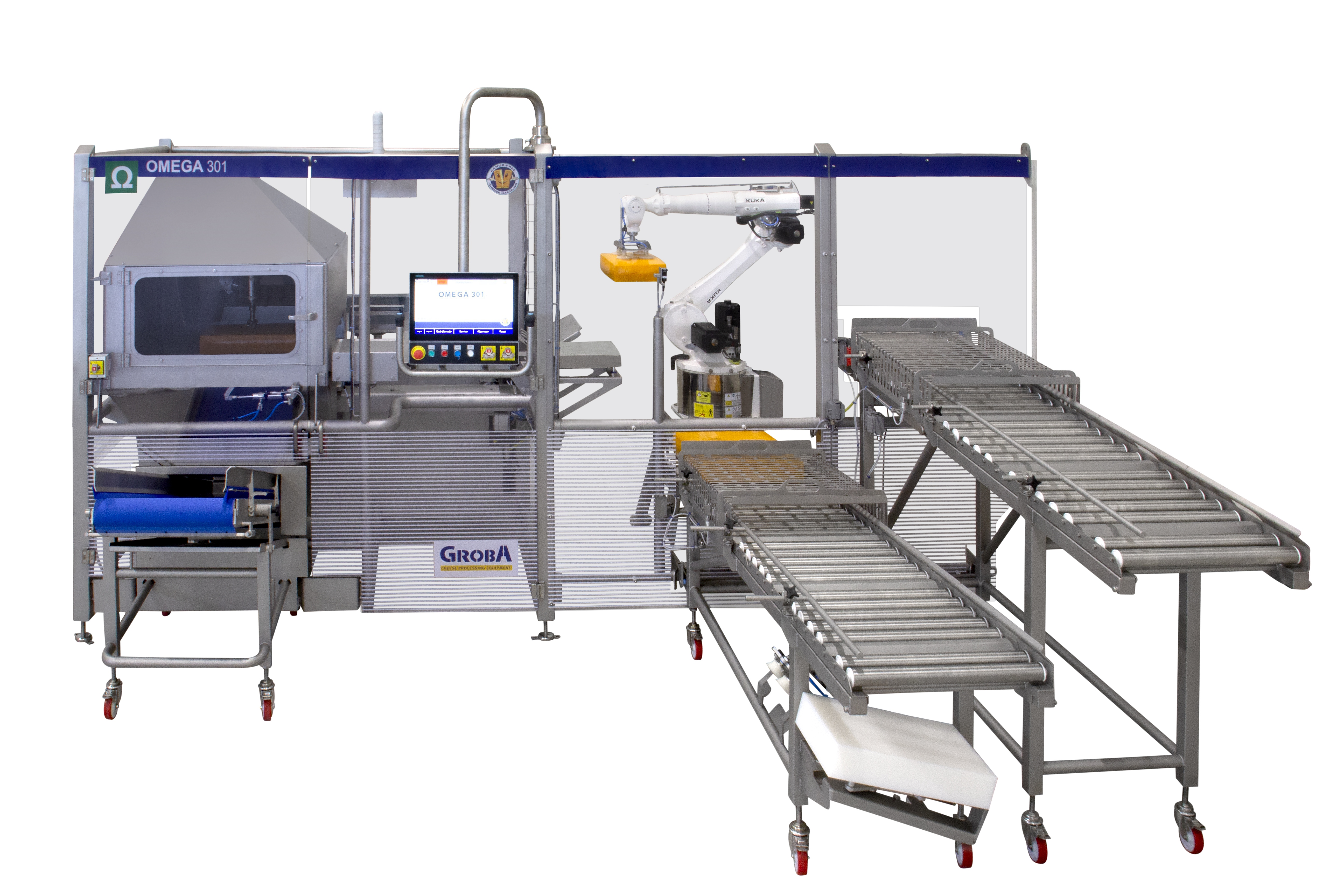 De automatisering bij Dupont Cheese was echter geen gemakkelijke opdracht voor machinebouwer Groba. Zo moesten ze rekening houden met de beperkte ruimte en de bedrijfsvoering die het mogelijk moest maken dat de installatie 24/7 kon blijven draaien. Een ander belangrijk aandachtspunt is dat kaas een natuurlijk product is en dat daarom niet elke kaas identiek dezelfde is. Robotleverancier KUKA heeft een eigen engineeringsafdeling en dus ook de kennis in huis om voor zulke uitdagingen oplossingen te vinden. Speciaal voor deze applicatie heeft KUKA daarom de KUKA.DeCrust software ontwikkeld. Elke kaas wordt apart 3D gescand door verschillende laserscanners. Deze scan creëert een puntenwolk die door de software KUKA.DeCrust wordt ingelezen. De software gaat vervolgens de verschillende banen bepalen die de robotarm moet volgen voor het zo efficiënt mogelijk ontkorsten van de kaas. De software is zo ontwikkeld dat Dupont Cheese zelf gemakkelijk zijn recepten kan instellen. Voor deze automatisering heeft Dupont Cheese ook geen extra, externe hardware nodig. De volledige applicatie draait namelijk op de KUKA robotsturing.