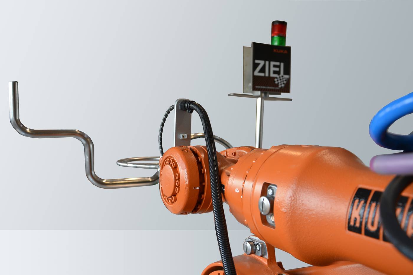 Pri každom kontakte drôtu zaznie poplašný signál. Pomocou riadiaceho panela KUKA s jednoduchou obsluhou si môže každý po krátkom poučení otestovať svoju šikovnosť. Robot KUKA pri tejto úlohe ukazuje, ako citlivo ním možno pohybovať a ako jednoducho ho možno obsluhovať.