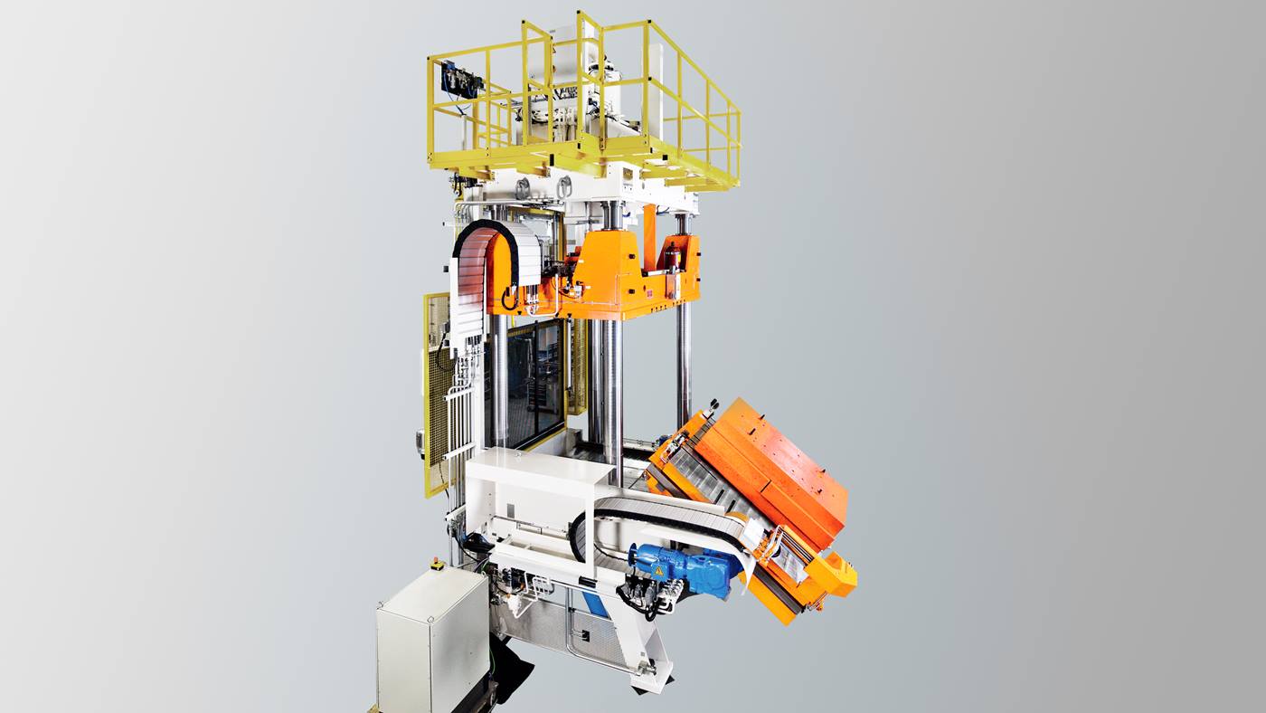 Sliding/tilting table press presented at Euroguss with new drive concept (in blue)