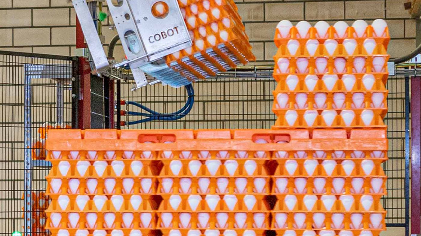 Dünyanın dört bir yanındaki çiftçiler, Meggson ile yumurta paletleme işlemlerini otomatikleştiriyor. Hollandalı şirketin tasarladığı robot tabanlı sistemler saatte 108.000’e kadar yumurtayı hazır hale getirmekte ve çalışanların sağlığını korumaktadır.