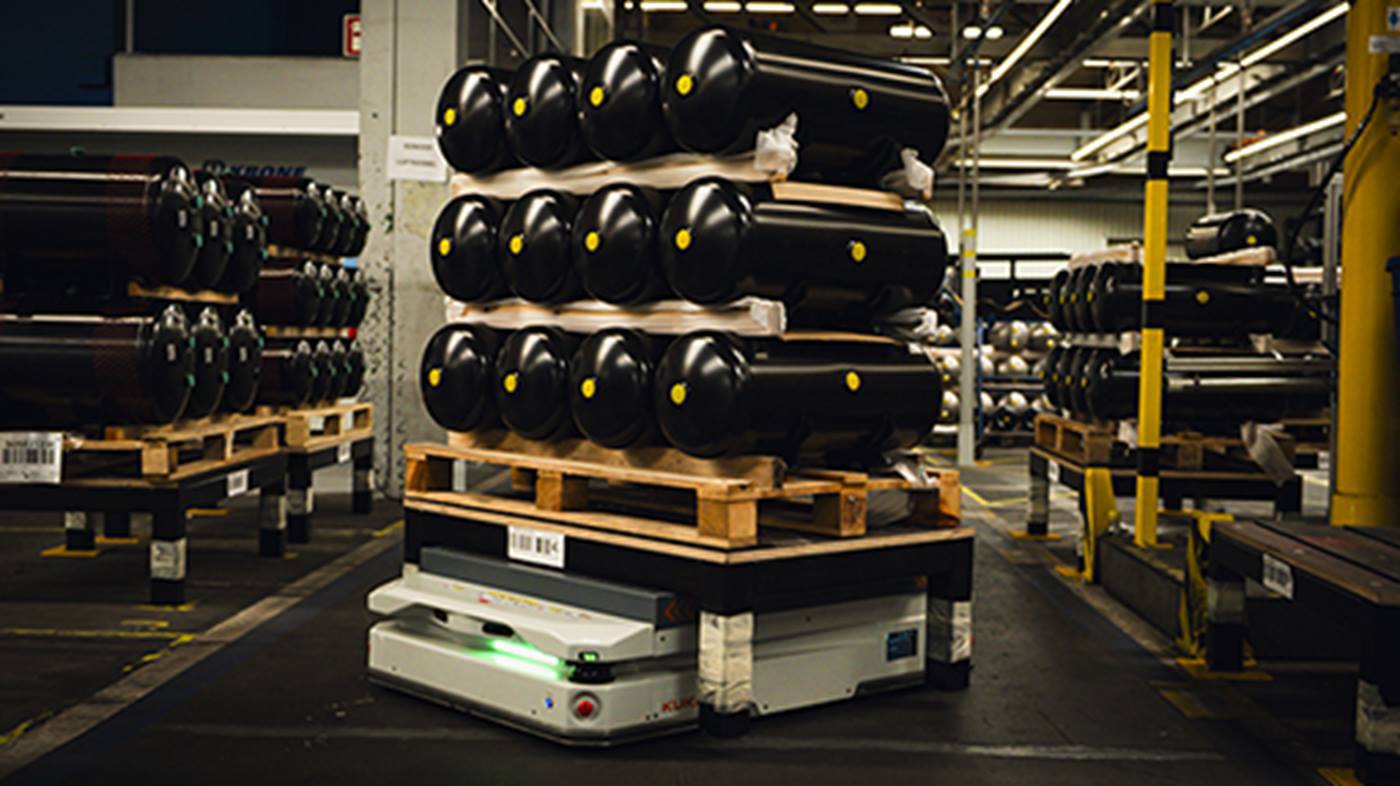 即便是像 KRONE 韦尔特尔工厂里的储气罐这类重型负载,对 KMP 1500P 来说也不在话下。